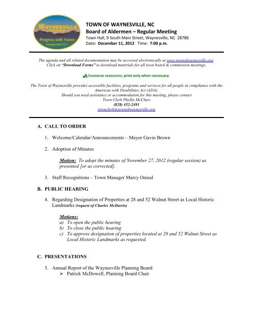 Https Www Waynesvillenc Gov Sites Default Files Inline Files 20 Aug 2011 Item 1a Agenda Full 20packet 0 Pdf
