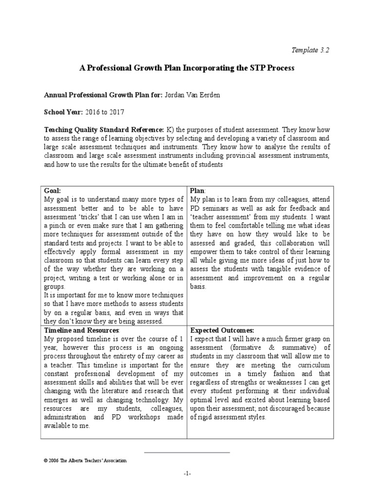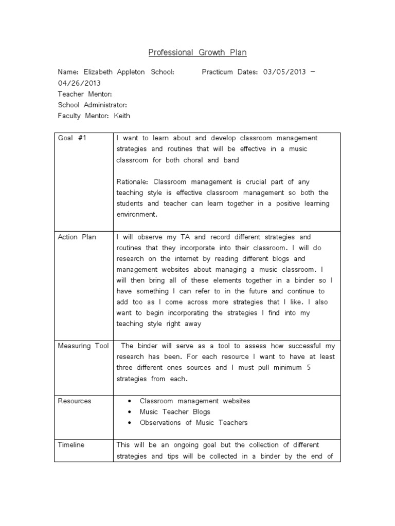 Professional Growth Plan For Teachers Sample