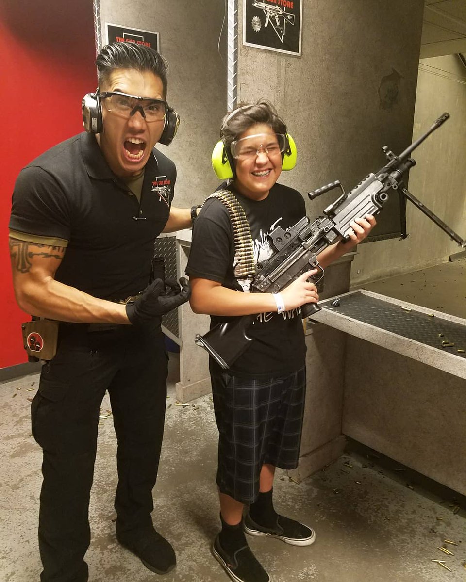 The Gun Store Pa Twitter Dillon Stopped By Today To Try Out The M249 S A W Posing With Angry Faces Didn T Work Out Well Because He Couldn T Stop Laughing Thegunstore Thegunstore Lasvegas