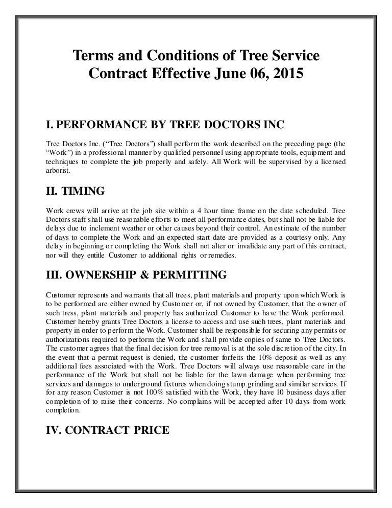 Your small business needs a great contract and here it is. Terms and Conditions of Tree Service Contract Performance by Molinas tree service LLC. Ad Search Ll Tree Service.